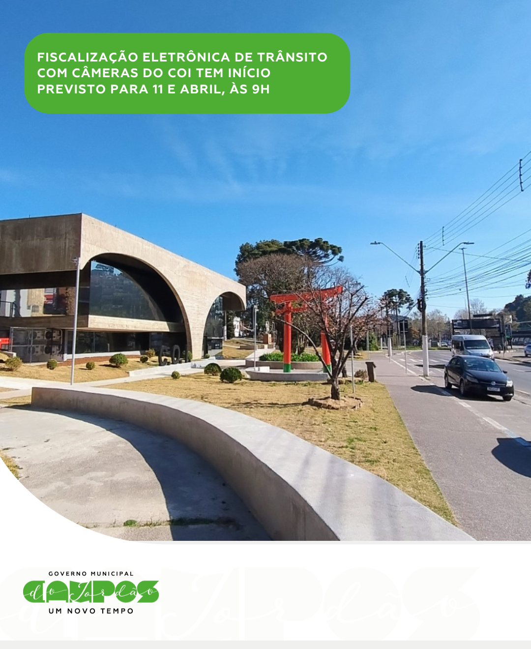 O Governo de Campos do Jordão informa que a próxima etapa da implantação do Centro de Operações Integradas (COI) prevê o início da fiscalização de trânsito por meio de câmeras a partir da sexta-feira, 11 de abril, às 9h. A medida integra as ações para ampliar a segurança viária e garantir maior organização no trânsito da cidade.